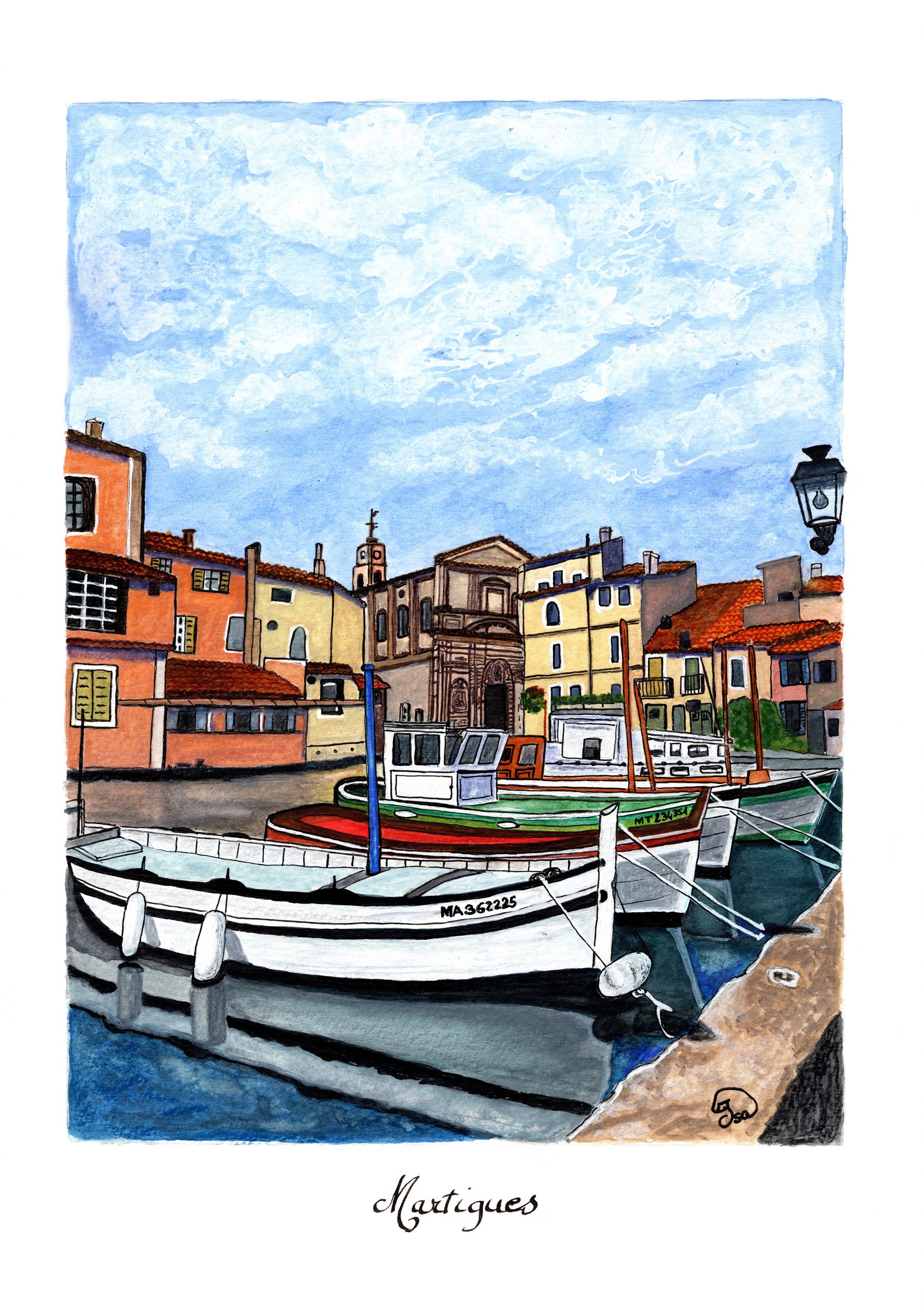 Martigues, avec ces bâtiments et ces bateaux ; une vision paisible et poétique de cette ville pittoresque.
